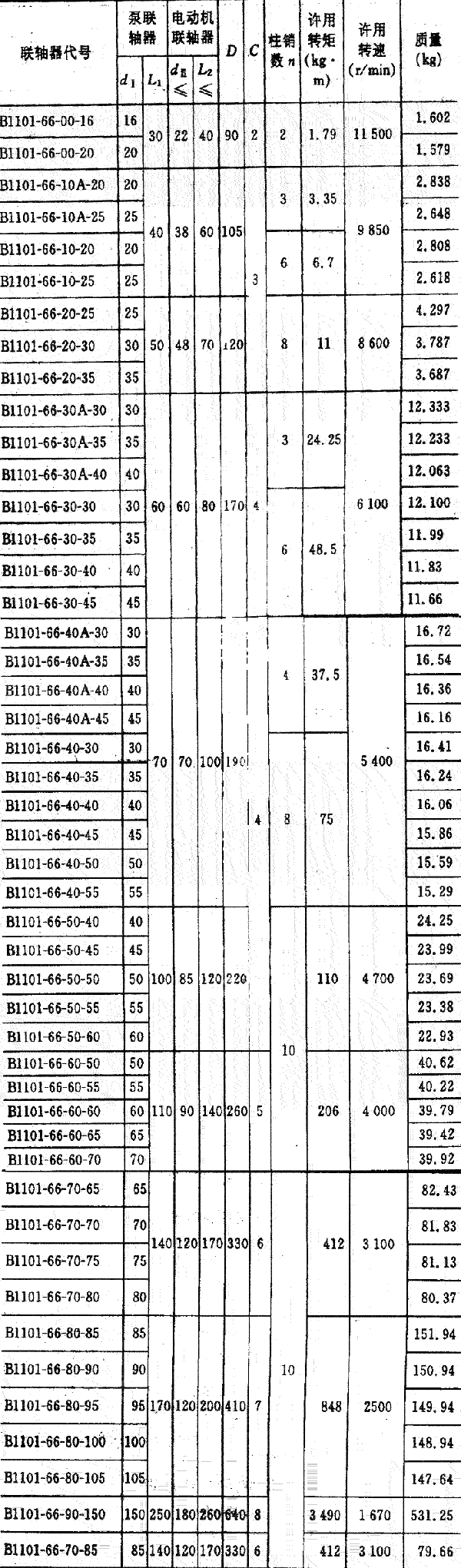 ⑤水泵行業的標準為Bll01,其最大許用轉矩為8316N·m,最大軸徑為200mm